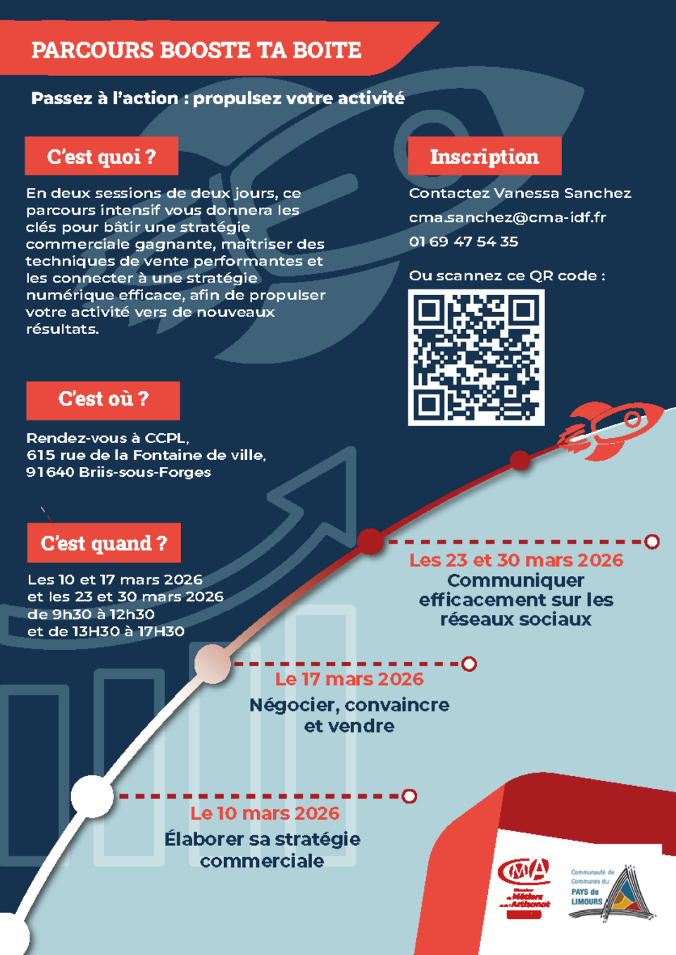 Attention, pensez à vous inscrire par mail (nombre de places limité) : cma.sanchez@cma-idf.fr, en mettant en copie le service Développement Économique : dev.eco@cc-paysdelimours.fr