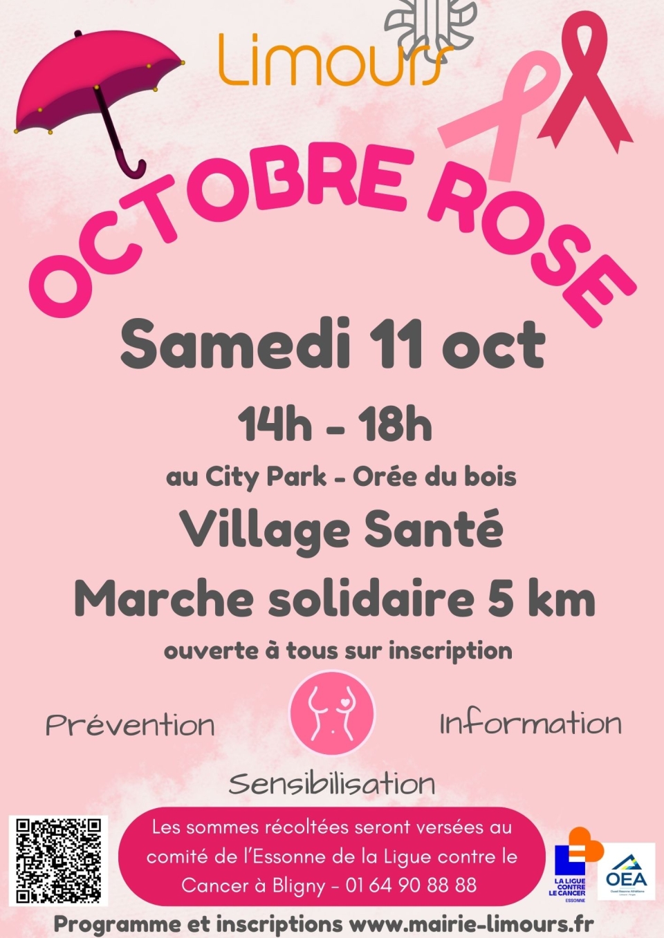 Inscription à la marche : en ligne ( https://www.helloasso.com/associations/ligue-contre-le-cancer-comite-essonne/evenements/octobre-rose-2025-limours ), en mairie ou sur place le jour même.